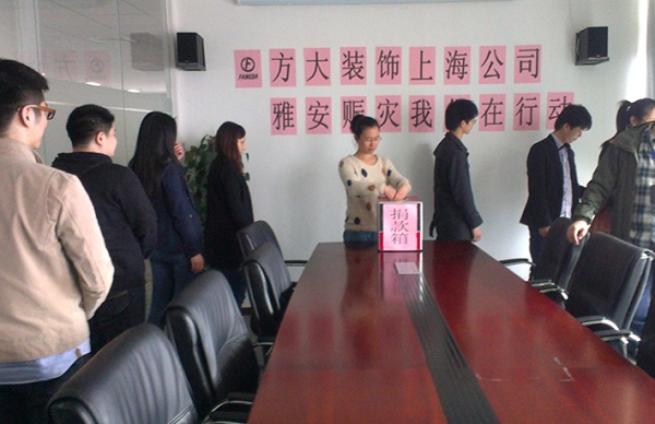 4月20日8時02分,四川省雅安市蘆山縣發生7.0級地震,人民生命財產遭受重大損失。一方有難,八方支援。在雅安人民在遭受災難的時候,方大集團在第一時間號召集團全體員工為災區捐款,支持雅安人民抗震救災。集團總部和分布在北京、上海、成都、沈陽、南昌、東莞等全國各地的方大集團員工紛紛捐款,以實際行動獻愛心。據不完全統計,截至4月23日,方大集團已經向雅安地震災區捐款已達257462元,以幫助災區人民重建家園,與災區人民一起共渡危難。這也是繼向汶川、玉樹地震災區捐款后,方大集團再一次向震區人民伸出援手,是方大集團“報國報民報一方”大愛精神的再次彰顯。