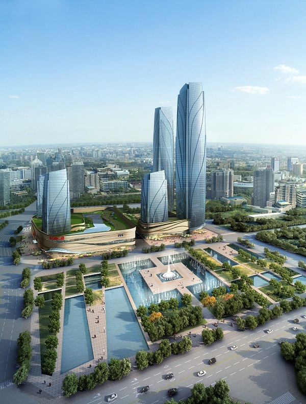 昆明西山萬達廣場是萬達集團打造的商業綜合體項目,享有全國萬達商業最高等級,兩棟高316米的甲級寫字樓是昆明第一高雙塔,也是迄今萬達歷史上的第一高樓,同時也是萬達集團第100個萬達廣場項目,其所處區域正好是昆明泛亞金融產業中心園區核心位置。外形設計構思是從昆明市市花-山茶花演化而來,從高空向下俯瞰是一朵含苞待放的山茶花,立面為向上盛開的花瓣形狀。項目主要采用單元式玻璃幕墻、玻璃肋點支撐幕墻、石材幕墻、框架式玻璃幕墻等系統。