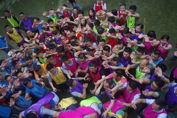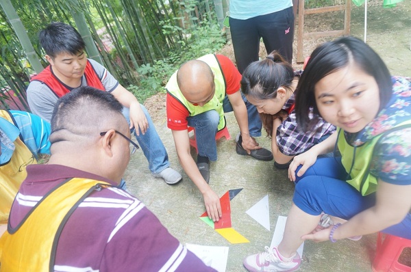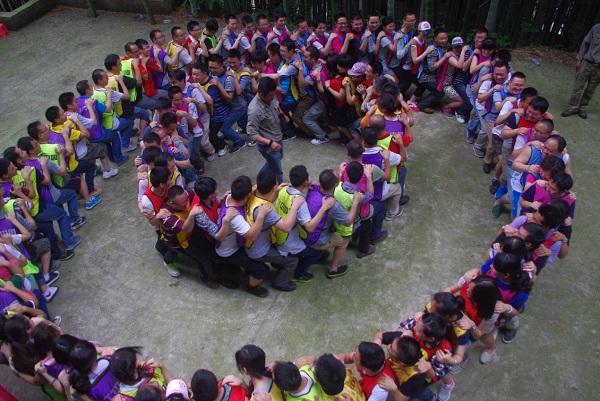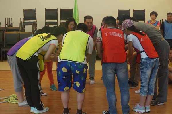 集合、報數(shù)、整隊、分組,一行人被分為6組開始不同主題的拓展活動,學(xué)員們分別進行了“國王與天使”、“目標市場”、“七巧板”、“團隊動力圈”、“挑戰(zhàn)99”、“合力致勝”和“畢業(yè)墻”等拓展科目。