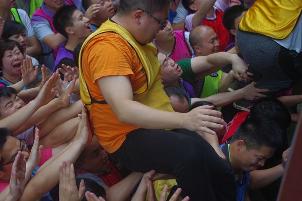 “團隊動力圈”和“畢業(yè)墻”科目帶給我們更多的是震撼、擔當和感動。“一個都不能少”這是學(xué)員在分享中提到的,團隊離不開個人,個人更需要團隊強大的力量支持。“讓我來撐起你”這是一種責任和承諾,“謝謝你們讓我當墩子”這是互相的信任和支持,“我的后背都交給你,來吧”、“你去休息換我來”、“注意安全”、“保護保護”……感動我們的是一句句承諾和信任,是一雙雙保持45度向上姿勢的手掌,是一個個泛紅的眼圈,我們奉獻于團隊,我為我的團隊感到驕傲和自豪。
