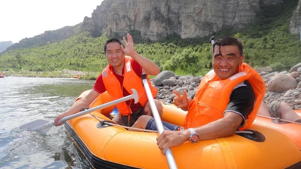 經(jīng)過(guò)2個(gè)多小時(shí)的車程,北京分公司壽星們于上午9時(shí)到達(dá)十渡自然風(fēng)景區(qū),開(kāi)始一天的游玩孤山寨、漂流戲水等活動(dòng)。孤山寨有著名的“一線天” “山門迎客”、“仙女浴潭”、“千古河床”、“洗心潭”、“石中石”、“銀川冰谷”等景觀,滿眼盡是賞心悅目的異石奇景。壽星們欣賞著自然風(fēng)光,感嘆著天地造物的神奇。遠(yuǎn)離城市的宣泄,忘記平時(shí)工作的緊張與疲憊,全心身不自覺(jué)地投入到了大自然的安靜和諧之中,溪水潺潺,鳥(niǎo)蟲(chóng)低鳴,十分地愜意與舒爽,雖然是爬山觀景,壽星們絲毫沒(méi)有倦意。中午稍作休息,壽星們來(lái)到溪水邊乘坐皮筏順?biāo)鳎谙袘蛩詈髢叭蛔兂闪藵娝髴?zhàn),溪水打濕了衣襟,壽星們毫不介懷,溪水之上留下了陣陣歡快的笑聲。