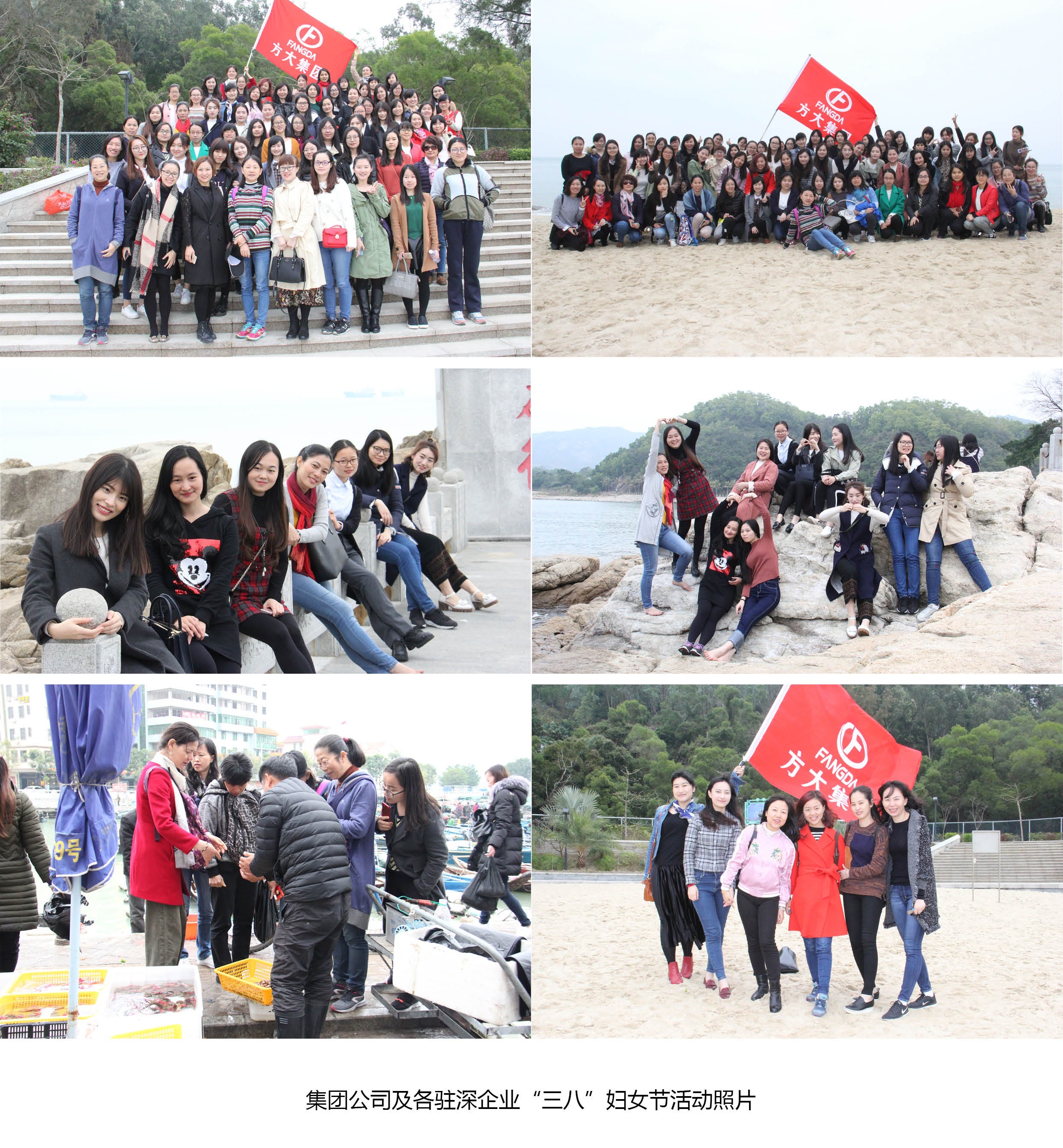 在深圳,集團公司及各駐深企業組織全體女員工前往深圳東部海岸進行休閑觀光及聚餐活動。下午1點30分,駐深企業女員工一行80余人在深圳方大大廈集結完畢,隨即分乘兩輛大巴前往深圳東部官湖角海灘。約90分鐘車程后,觀光團達到目的地。在這個屬于女性同胞的節日里,天公也別樣作美,上午淅瀝瀝的大雨,一到下午就停了,地面積水也逐漸干了。美麗的官湖角海灘上,暖風輕拂,碧海一望無際。美麗的方大女員工們在海灘上合影留念,結伴游玩。她們或放眼眺望欣賞海景,或高舉手機專注地自拍,或并肩攜手踏浪,其樂融融。離開官湖角海灘后,方大女員工們一道專程前往惠陽澳頭村聚餐,一品滋美的海鮮大餐。