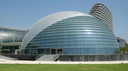 在幕墻安裝階段,方大團隊在施工方法上大力創新。針對建筑正面肋點式玻璃幕墻跨度大的情況(最大跨度達到16米),考慮到建筑美觀及功能使用要求,采用了拉桿玻璃肋相結合的幕墻新形式,既通透美觀,同時又有效的減小了對室內空間的占用。該項目音樂廳為半橢球形,高度達25米。其奇特的造型給幕墻施工增加了不少的難度。方大團隊采用三維空間電腦模擬放線定點技術,精準安裝,完美復原了音樂廳幕墻設計效果。