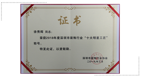 方大建科區(qū)域經(jīng)理張建輝——2018年度深圳市裝飾行業(yè)“十大優(yōu)秀項(xiàng)目經(jīng)理”