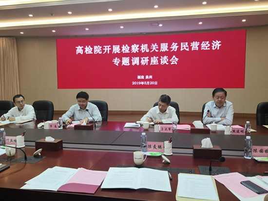 5月20日,最高人民檢察院組織部分全國人大代表到泉州市檢察院開展檢察機關服務民營經濟專題調研座談會,聽取代表意見建議。最高人民檢察院檢委會專職委員、研究室主任萬春,福建省檢察院黨組成員、副檢察長葉燕培,泉州市檢察院黨組書記、檢察長高揚捷等出席座談會。全國人大代表、方大集團董事長熊建明參加座談并發言,就修改《刑法》和圍繞支持民營企業發展提出了多條意見和建議。