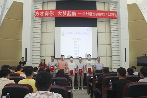 周志剛與人力資源部副部長賈松濤為在培訓中表現優異的學員崔瑜等5人頒發獎狀。結營儀式最后,應屆生新員工積極上臺發表感想,他們表示雖然入職方大不久,但已為方大屹立在世界各地的高樓幕墻、保障全球42個城市軌道交通線的地鐵屏蔽門設備感到自豪,未來也希望自己參與的項目成為方大的驕傲。